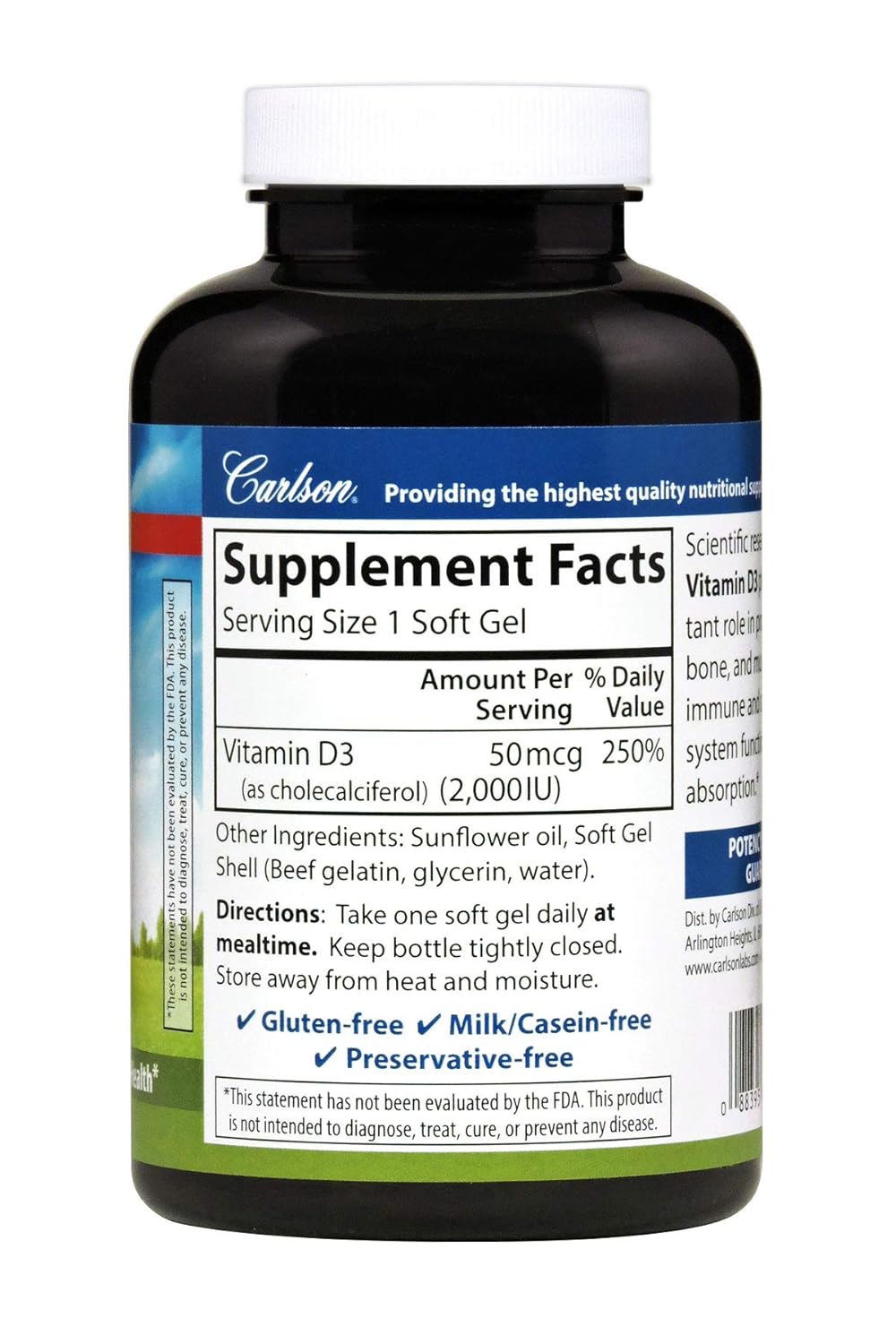 Carlson vitamin d3 i recommend this vitamin d3 product. One serving of carlson labs vitamin d3 measured 1020 iu of vitamin d3 only 2 over its label claim. Carlson d is used as a dietary supplement in people who do not get enough vitamin d in their diets.