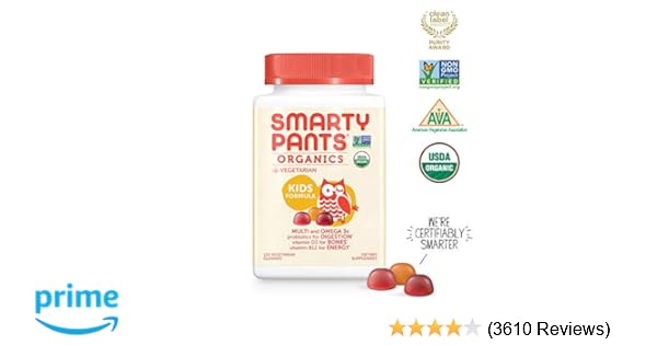 Smartypants Vegetarian Organic Kids Daily Gummy Vitamins Multivitamin Gluten Free Non Gmo Omega 3 Probiotic Vitamin D3 Methylcobalamin B12