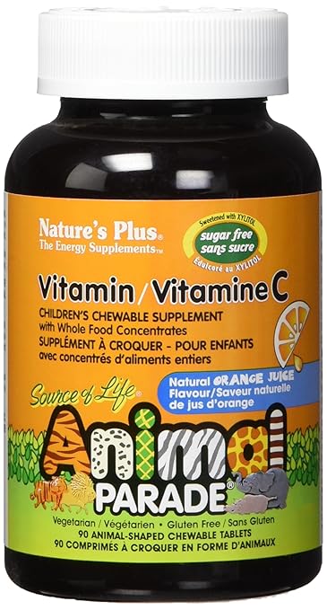 Natures Plus Animal Parade Sugar Free Childrens Vitamin C Supplement Natural Orange Juice Flavor