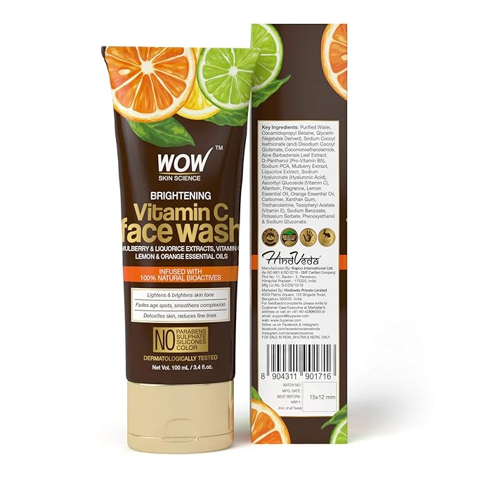 Wow Brightening Vitamin C Face Wash No Parabens Sulphate Silicones Color 100ml Tube