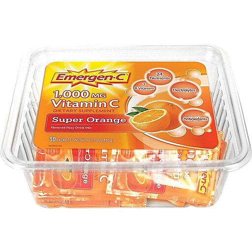 Emergen C 30 Count Super Orange Flavor 1 Month Supply Dietary Supplement Fizzy Drink Mix With 1000mg Vitamin C 0 32 Ounce Powder Packets