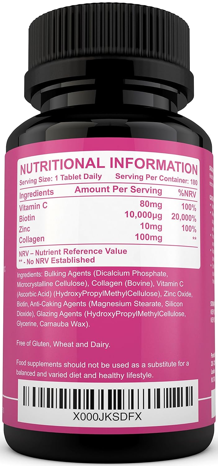 Suplemento De Biotina Para El Crecimiento Del Cabello Con Colageno Zinc Y Vitamina C 180 Comprimidos Suministro Para 6 Meses Biotina Unica De