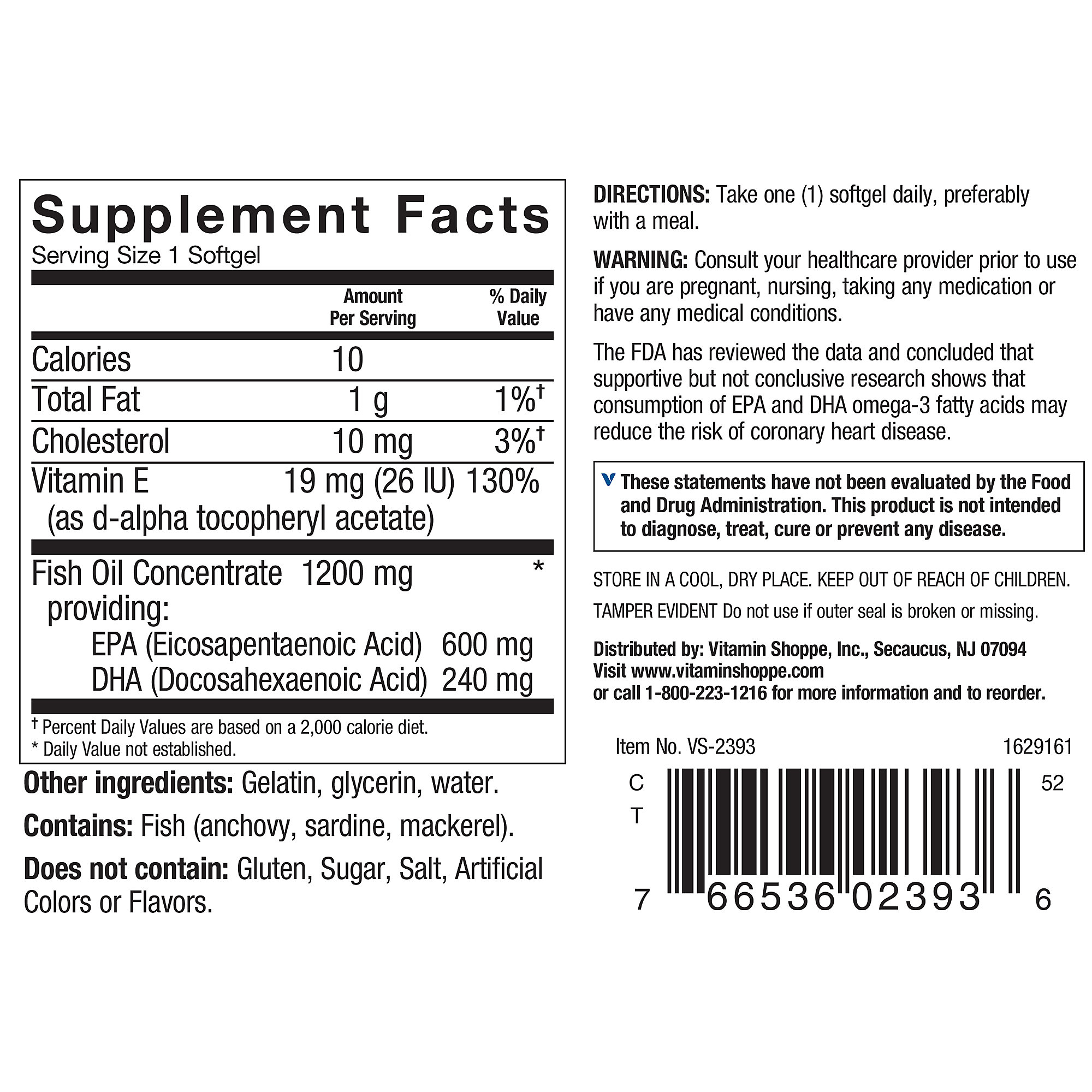 The Vitamin Shoppe Omega 3 Fish Oil 1000mg Epa 300mg Dha 200mg Purity Assured Molecularly Distilled To Support Cardiovascular Joint And Brain