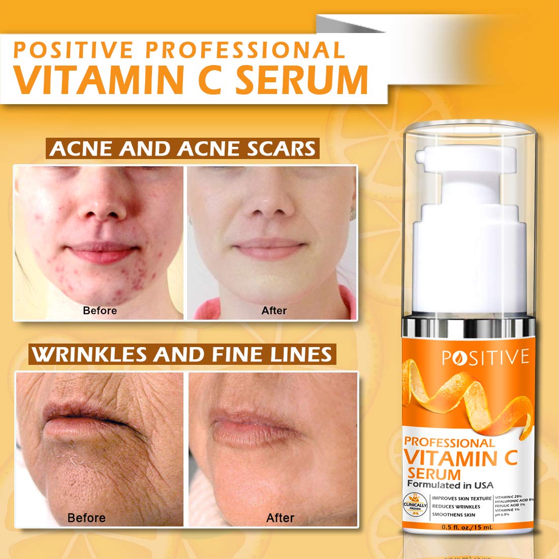 Positive Vitamin C Serum For Skin Brightening Anti Ageing Vitamin C 25 Hyaluronic Acid Acid Collagen Peptide Anti Ageing Serum 15ml