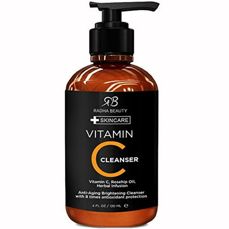 Radha Beauty Vitamin C Facial Cleanser 4 Oz Face Wash For Anti Aging Skin Brightening With Vitamin C Herbal Infusion Rosehip Oil