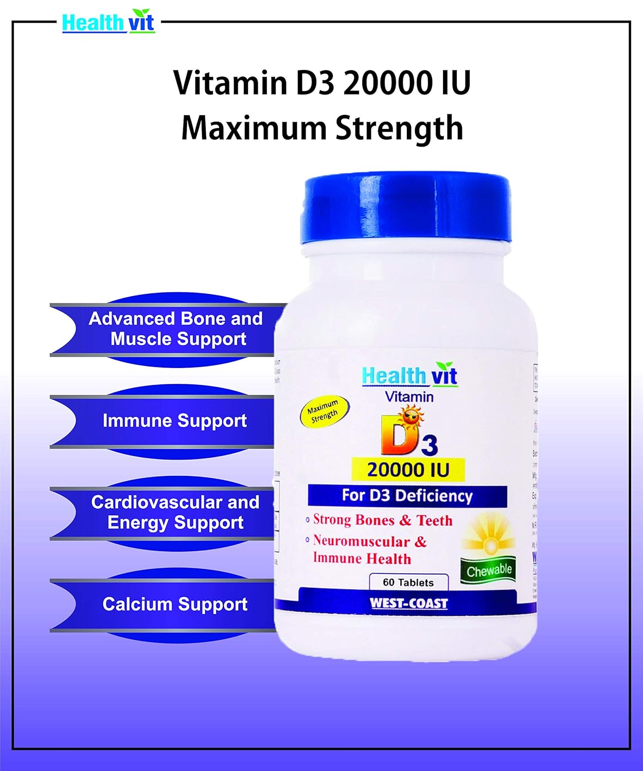 Healthvit Vitamin D3 20000 Iu Maximum Strength 60 Tablets Tablets 60 No S Price In India Compare Prices