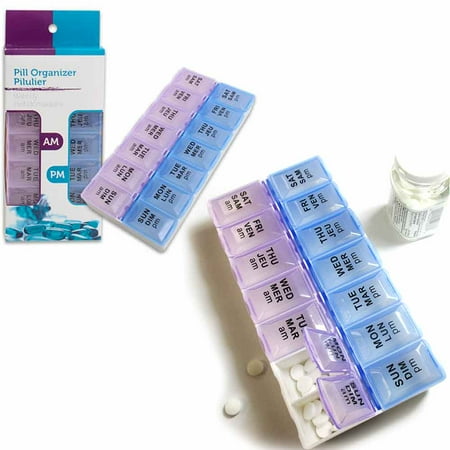 2 Packs Am Pm 7 Day Pill Box Organizer Medicine Tablet Daily Vitamin Case Holder