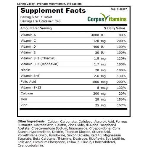 Spring Valley Prenatal Multivitamin 240 Tablets From Spring