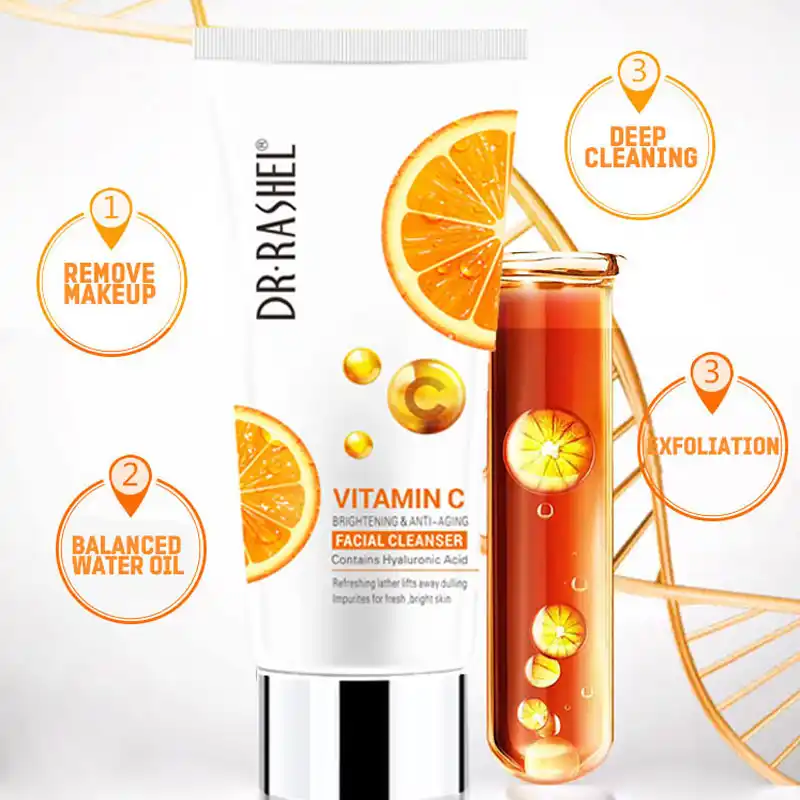 Dr Rashel Vitamin C Facial Cleanser Organic Daily Face Wash Anti Aging Mild Exfoliating Gel Deep Pore Cleansing Skin Care 80ml