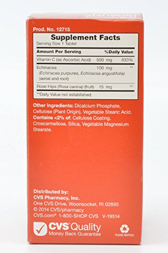 Cvs Immune Health Support 100 Tablets Vitamin C 500mg With Echinacea Rose Hips