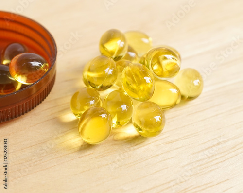 Cod Liver Oil Omega 3 Gel Capsules Isolated On Wooden