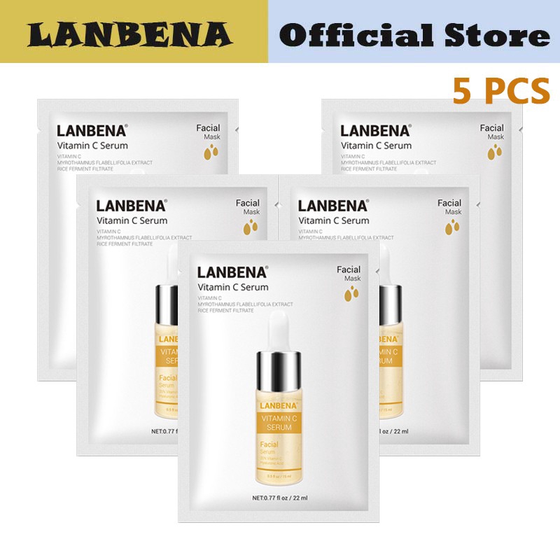 Lanbena 5pcs Face Masks Vitamin C Serum Sheet Mask Whitening