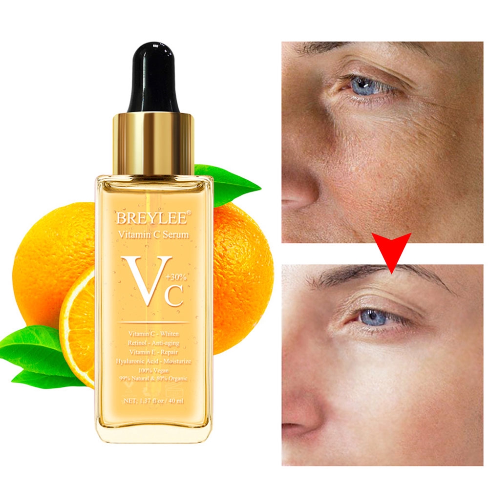 Breylee Vitamin C Serum Whitening Face Skin Care 40ml Dark Spots Repair Hyaluronic Acid Moisturizing Anti Aging Facial Essence