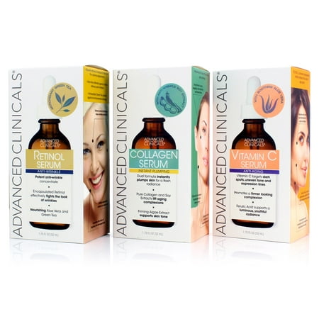 Advanced Clinicals Complete Skin Care Set With Anti Aging Retinol Serum Plumping Collagen Serum And Vitamin C Serum For Wrinkles Dark Spots And
