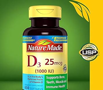Nature Made Vitamin D3 25 Mcg 1000 Iu Softgels Mega Size 650 Packaging May Vary