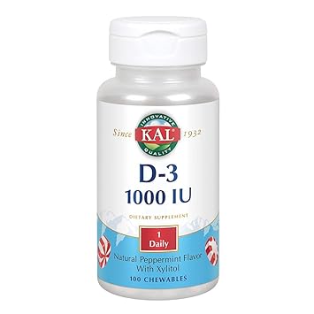 Kal Vitamin D 3 1000 Iu Chewable Natural Peppermint Flavor Healthy Immune Function Bone Support