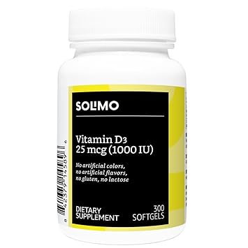 Amazon Brand Solimo Vitamin D3 25 Mcg 1000 Iu 300 Softgels Ten Month Supply