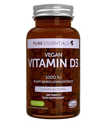 Pure Essentials Vegan Vitamin D3 1000iu Cholecalciferol Lichen Extract 365 Tablets