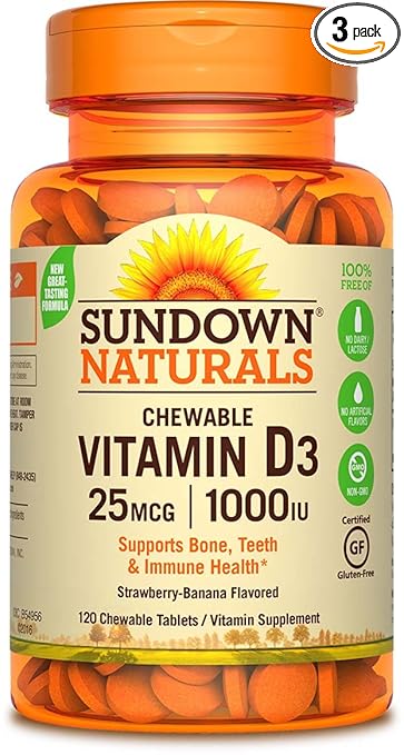 Sundown Naturals Vitamin D3 1000 Iu 120 Chewable Tablets Pack Of 3