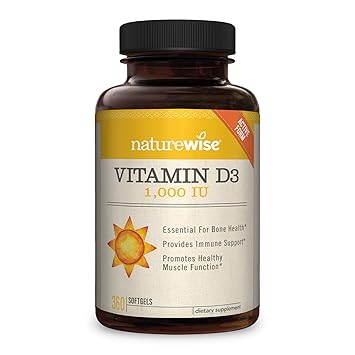 Naturewise Vitamin D3 1 000 Iu For Healthy Muscle Function Bone Health And Immune Support Non Gmo And Gluten Free In Cold Pressed Organic Olive