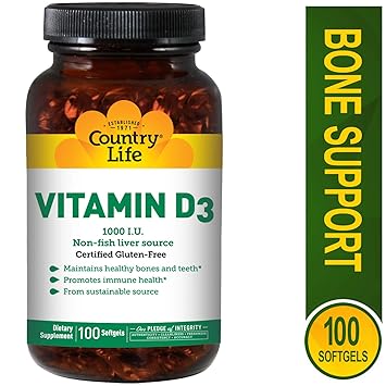 Country Life Vitamin D3 Non Fish 1000 Iu 100 Softgels