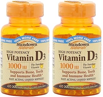 Sundown Naturals High Potency Vitamin D3 1000 Iu Bonus Size Bottles 200 Softgels Pack Of 2 Total 400 Softgels