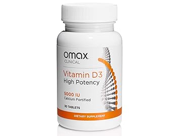 Omax High Potency Vitamin D3 Tablets 5 000 Iu Clinical Strength Soy Free Gluten Free Non Gmo 30