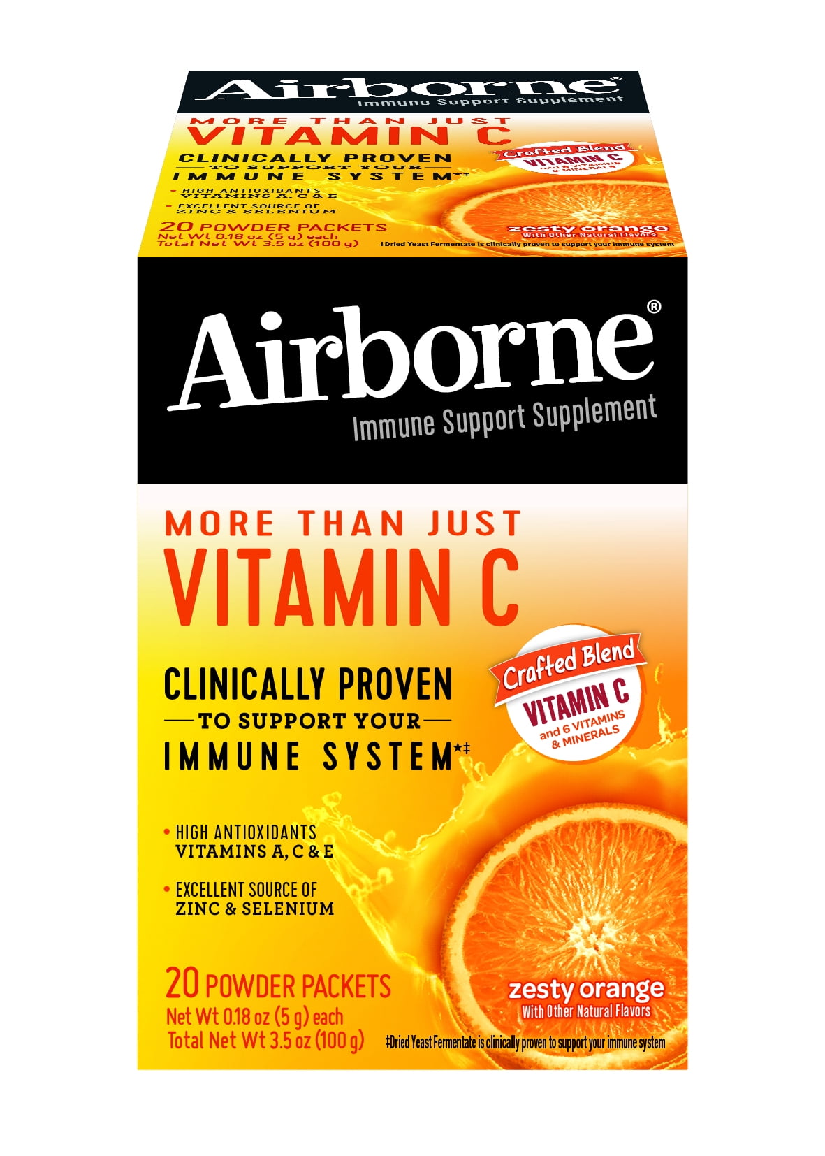 Airborne Vitamin C Immune Support Supplement Zesty Orange 20 Powder Packets