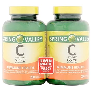 Spring Valley Vitamin C With Rose Hips 500 Mg Twin Pack 250 Tablets Each Bottle