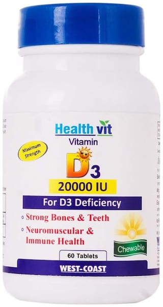 Healthvit Vitamin D3 20000 Iu For D3 Deficiency 60 Tablets Pack Of 2