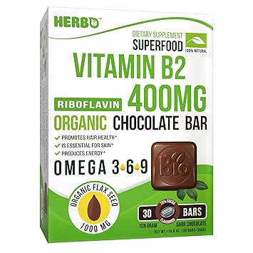Herbo Superfood Vitamin B2 Riboflavin 400 Mg Supplement In Organic Dark Chocolate Increases Energy And Helps For Stress Headaches Migraines 30