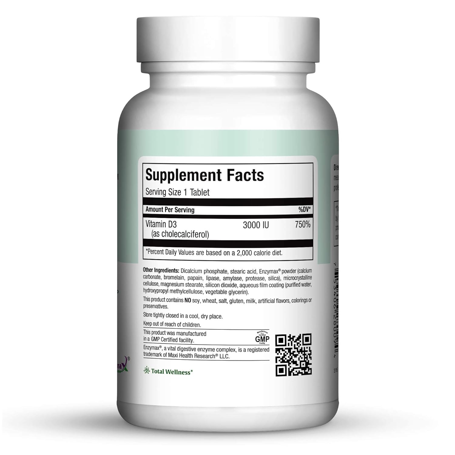 Maxi Health Natural Vitamin D3 3000 Iu Nutrition Supplement 90 Tablets Kosher