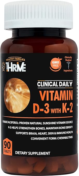 Clinical Daily Vegan Vitamin D3 With K2 Non Gmo Chewable Supplement Fat Soluble Vit D