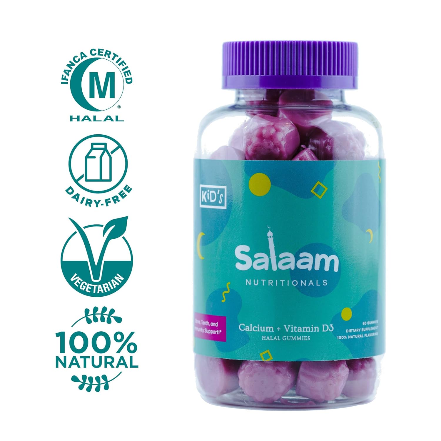 Salaam Nutritionals Halal Calcium Vitamin D Gummies Bone Support For Kids And Adults Vegetarian Kosher Gluten Dairy Nut Free 60 Count