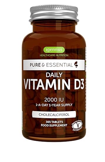 Pure Essentials Daily Vegetarian Vitamin D3 2000iu Cholecalciferol 365 Small Tablets
