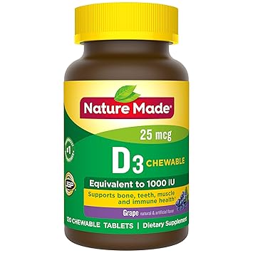 Nature Made Adult Chewable D3 1000 Iu Grape Flavored Tablets 120 Ct