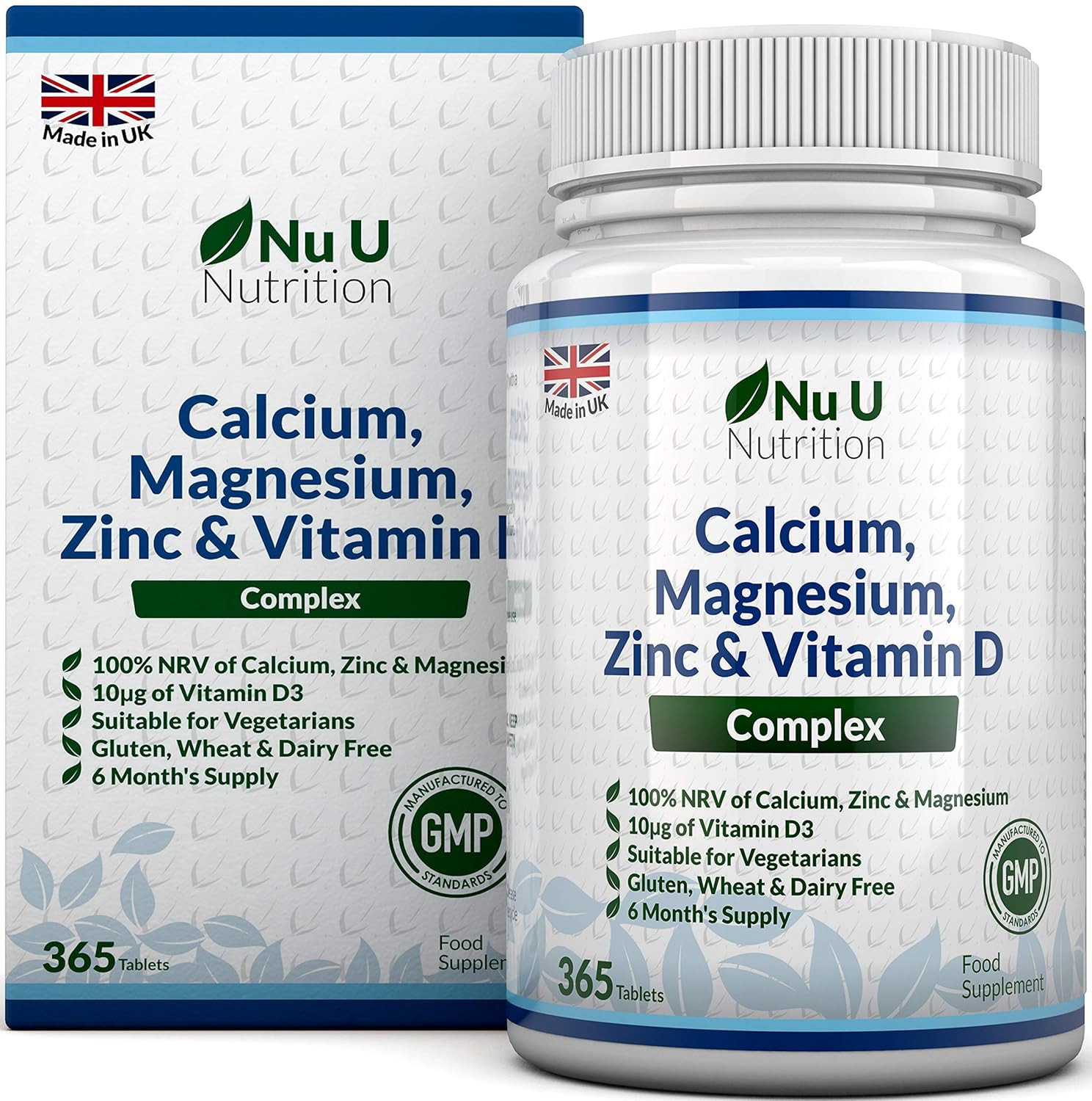 Calcium Magnesium Zinc Vitamin D Supplement 365 Vegetarian Tablets 6 Month Supply Of Nu U Nutrition Osteo Supplement