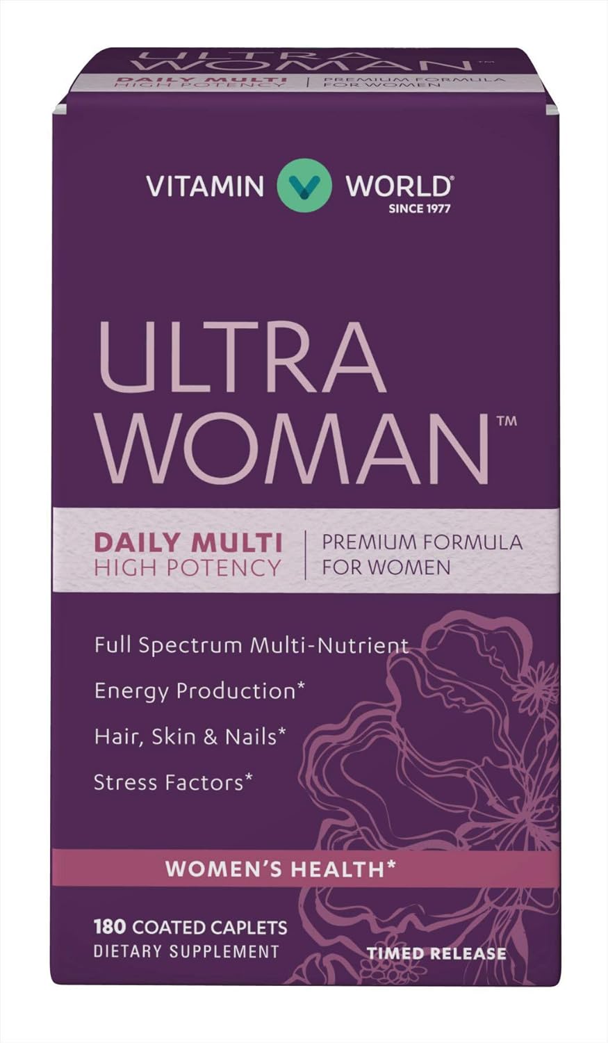 Vitamin World Ultra Woman Daily Multivitamins 180 Caplets High Potency Full Spectrum Multi Nutrient Hair Skin Nails Timed Release Gluten Free