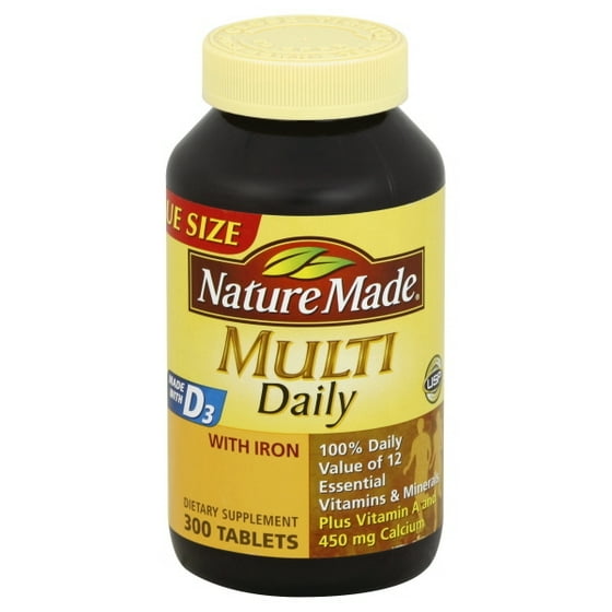 Nature Made Multi Daily Tablets W Iron 100 Daily Value Of 12 Vitamins Minerals Calcium 450 Mg 300 Ct