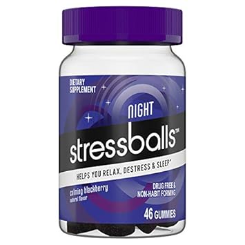 Stressballs Night Sleep Vitamins Gummy 46 Gummies Blackberry Flavor Formulated With Melatonin