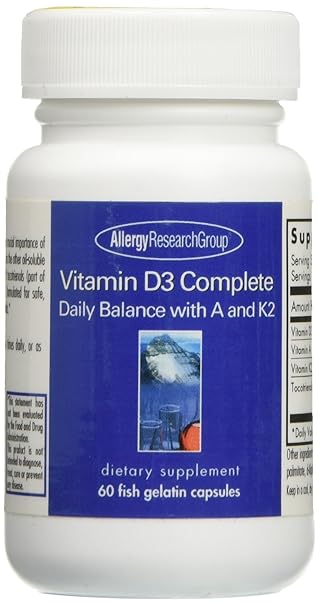 Allergy Research Group Vitamin D3 Complete Daily Balance With A And K2 Fish Gelatin Capsules 60 Count