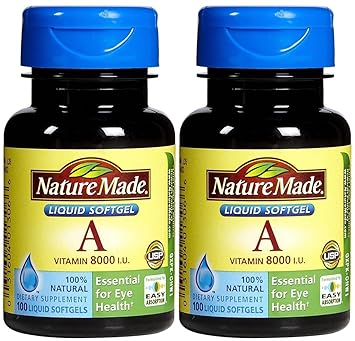 Nature Made Vitamin A 2 400 Mcg 8 000 Iu 100 Softgels Pack Of 2