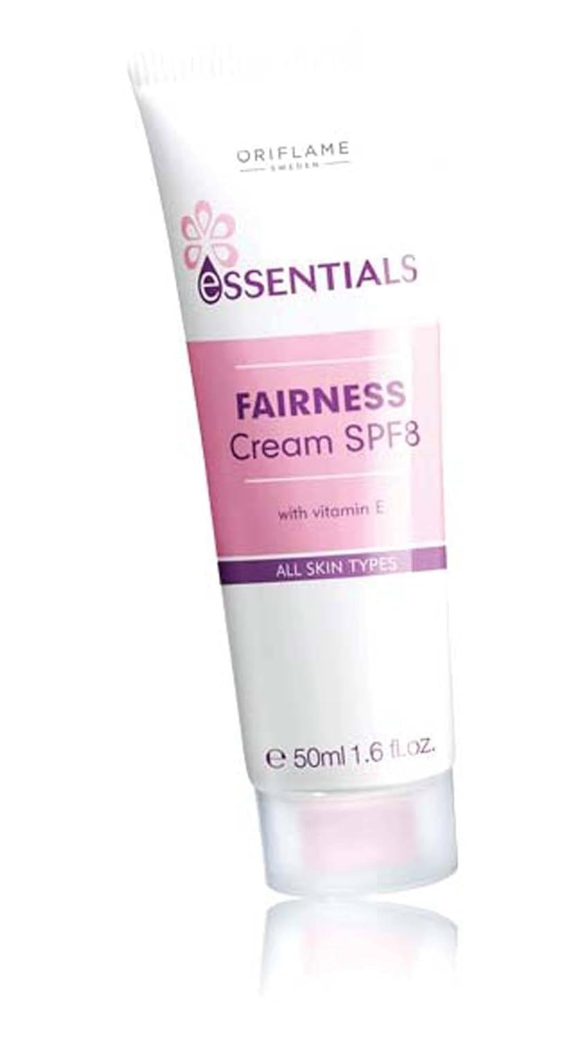 Oriflame essentials fairness cream spf8 also contains spf 8 what else can i ask for in this season. Rich formula with skin lightening complex vitamin e and spf 8. Moisturises brightens and prevents uv induced pigmentation.