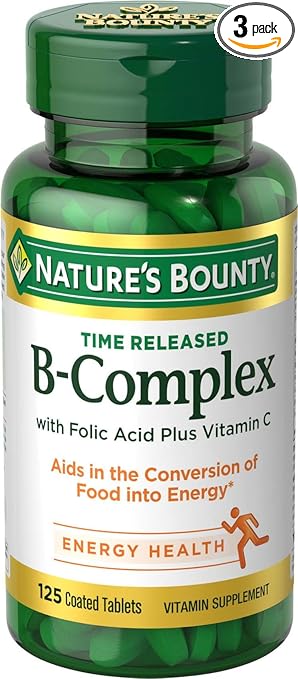 Nature S Bounty Vitamin B Complex With Folic Acid And Vitamin C Supplement Aids Metabolism And Antioxidant Support 125 Tablets 3 Pack