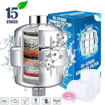 Beymill 15 Stage Shower Filter With Vitamin C 2 Replacement Cartridges Remove Chlorine Fluoride Lead Water Softener For Hard Water Universal Filtered