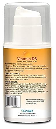 Anumed Vitamin D3 Cream With Magnesium 10 000 Iu Healthy Skin Care Face Cream Maximum Calcium Absorption Non Greasy Moisturizer For Dry Skin
