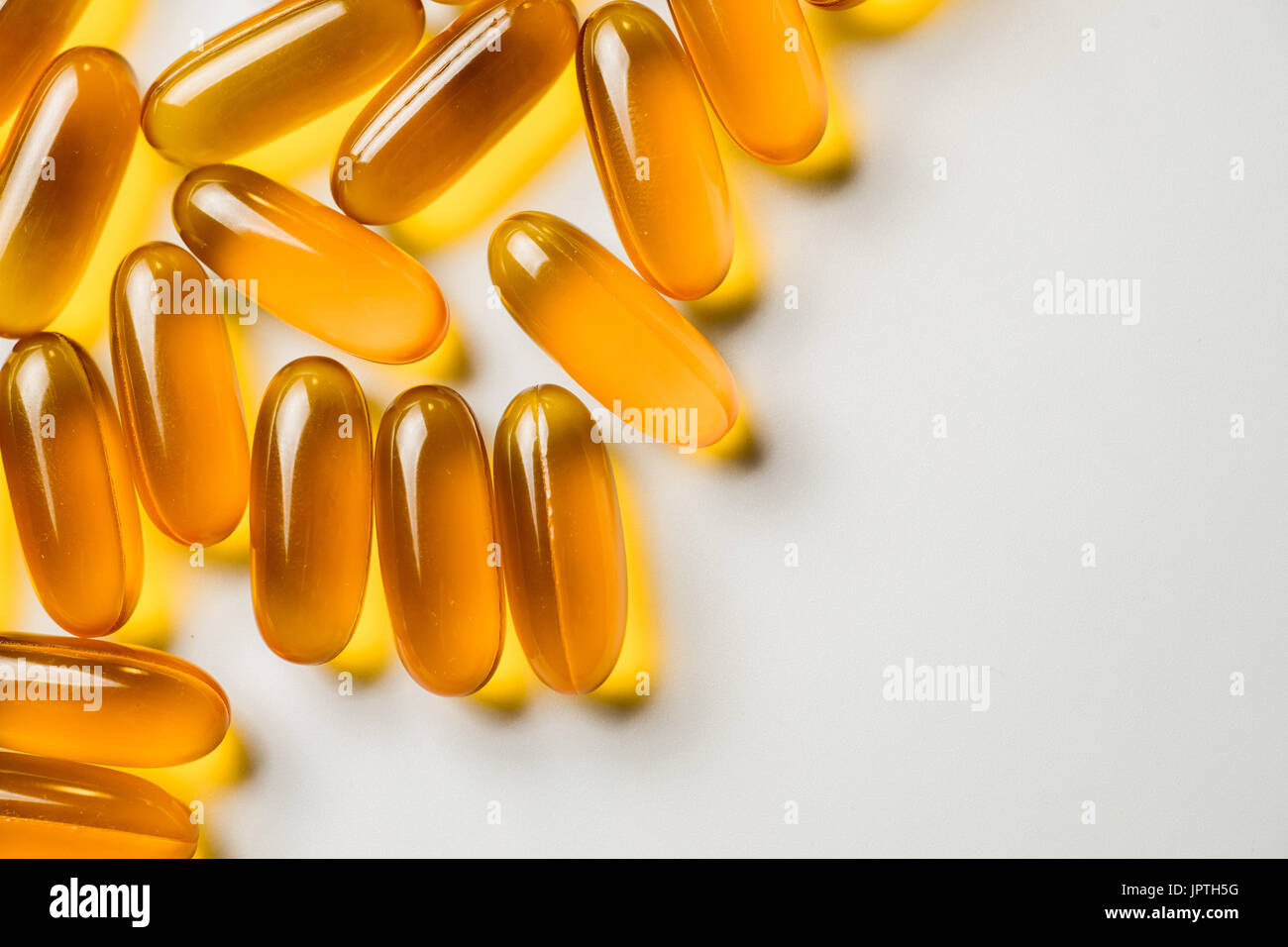 Vitamin E Fish Oil Capsules On White Background Copy Space