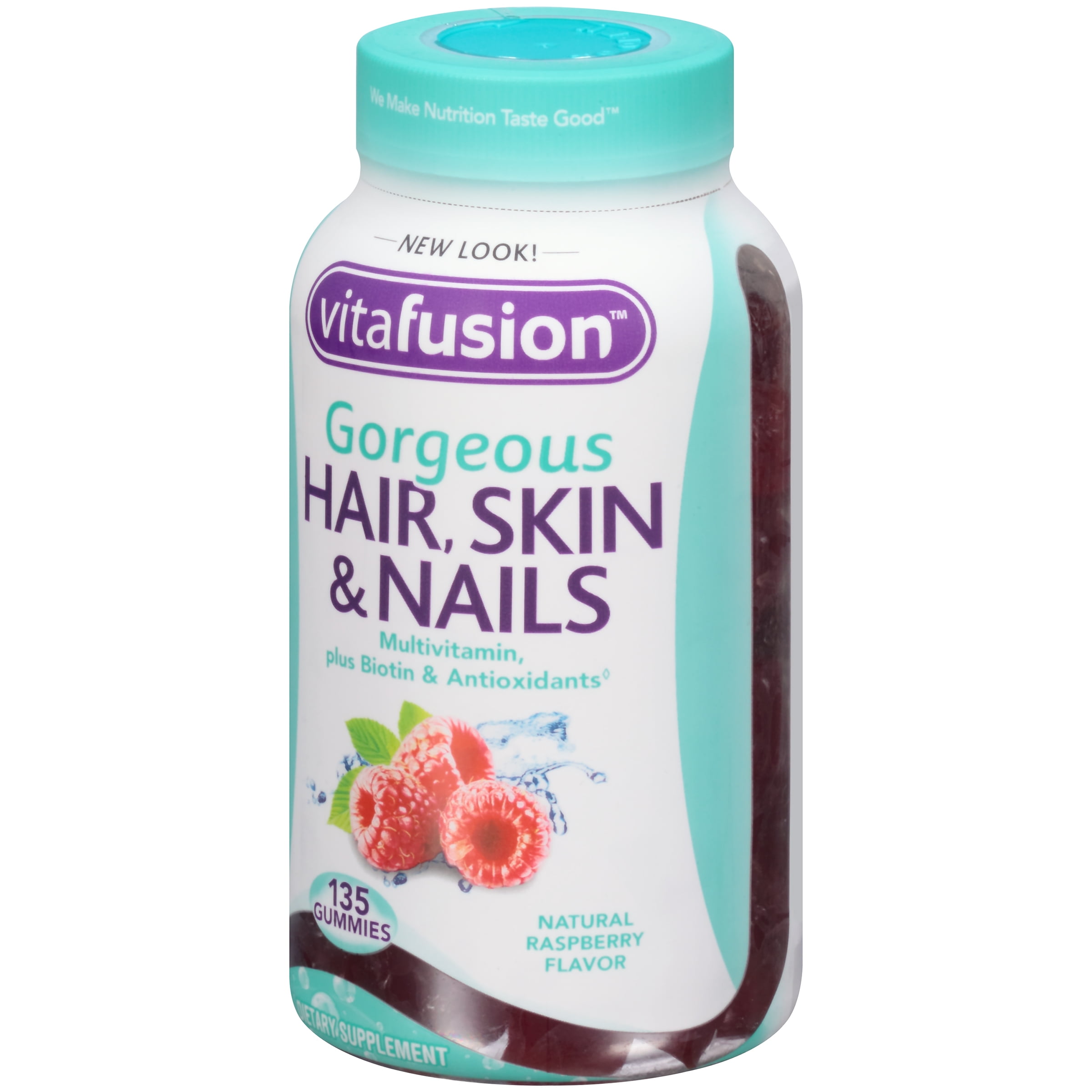 Vitafusion Hair Skin Nails Supplement Gummies Raspberry 135ct
