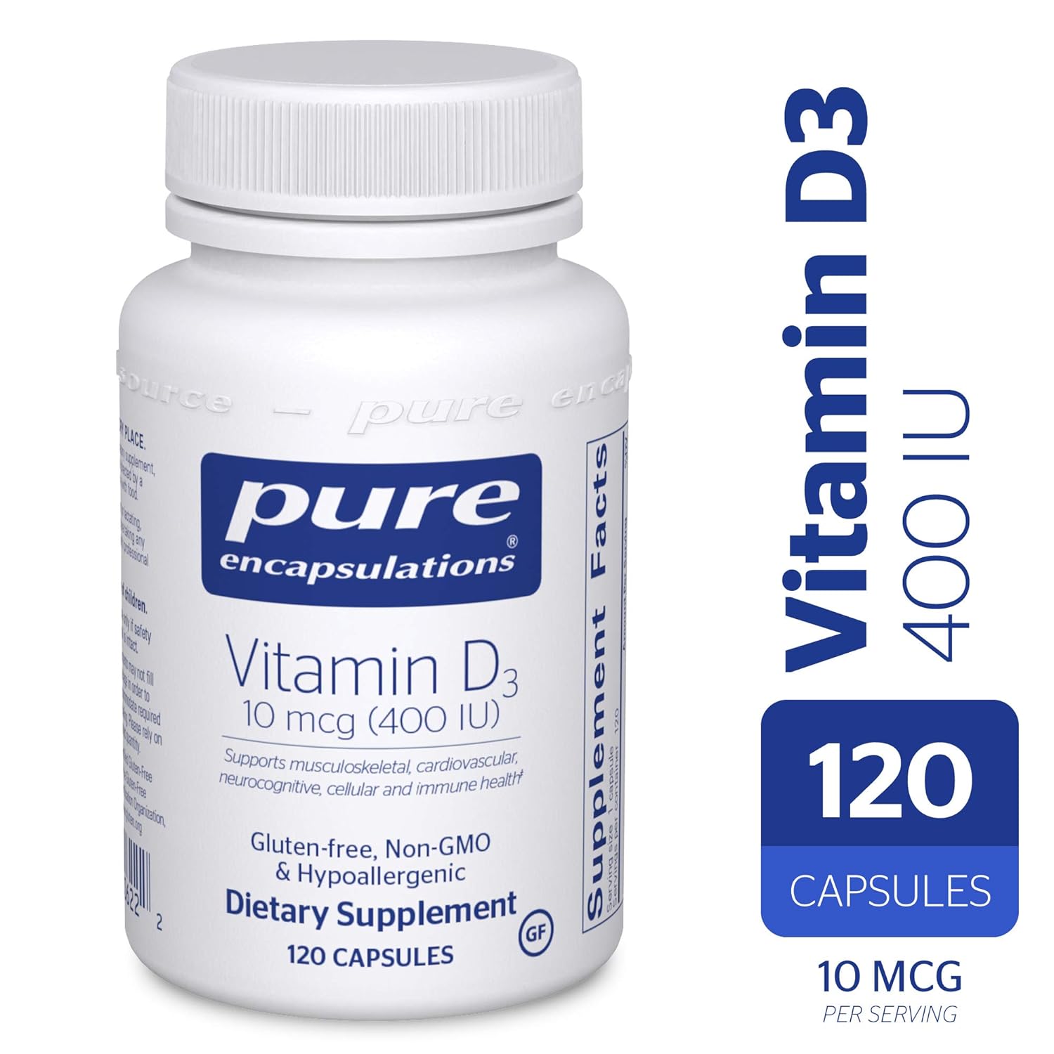 Pure Encapsulations Vitamin D3 10 Mcg 400 Iu Hypoallergenic Support For Bone Breast Prostate Cardiovascular Colon And Immune Health 120