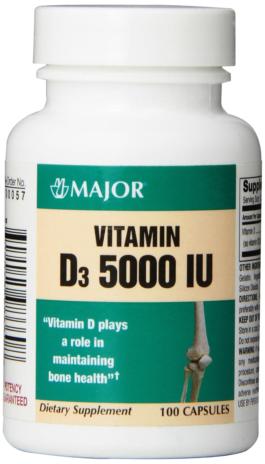 Major Vitamin D3 Supplement 5000 Iu 100 Caps Pack Of 2